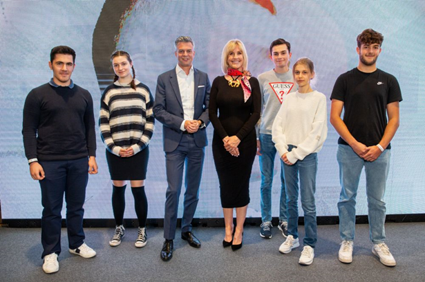 Erin Brockovich signiert Exemplare ihres Buches "Superman`s not coming." mit A1 Geschäftsführer Thomas Arnoldner und SchülerInnen