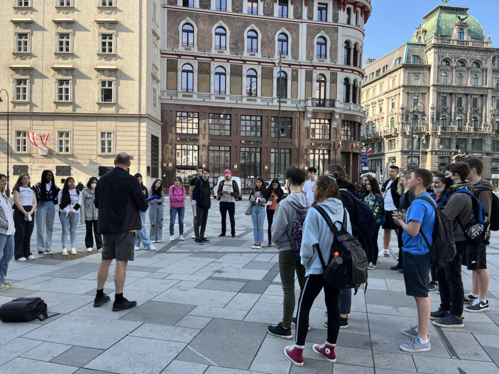 Am Dienstag, 10.5.22 stand ein wenig Sightseeing auf dem Programm, immerhin ist der kulturelle Austausch auch ein Ziel des ERASMUS+ Programms. Dabei haben wir Führungen durch die Innenstadt organsiert und eine Rätselrally durchgeführt, die sogar unseren Schüler*innen etwas über Wien beigebracht hat. Nachmittags gings dann in den Wiener Prater zum Riesenrad und danach – mit open End – zu Physikexperimenten mit den diversen Attraktionen.