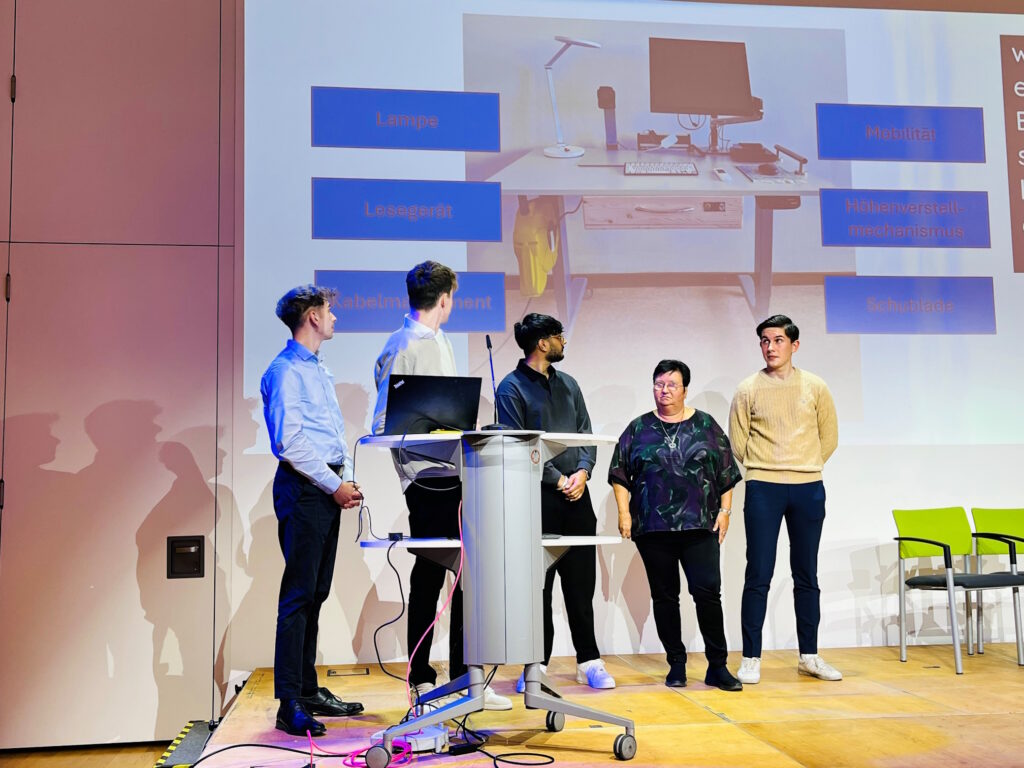 Im Zuge ihrer Diplomarbeit statteten Murtaza Mayil, Florian Pleha und Luis Reisch einen höhenverstellbaren Tisch mit Rollen, einem verstellbaren Arm, dem dazu passenden Touchscreenmonitor, einem Lesegerät, einer blendfreien verstellbaren Leuchte und weiterem Zubehör aus. Das Lesegerät ermöglicht es, sowohl kleingeschriebene Texte zu vergrößern als auch einige Meter Entferntes, wie z. B. Präsentationsfolien, lesen zu können.