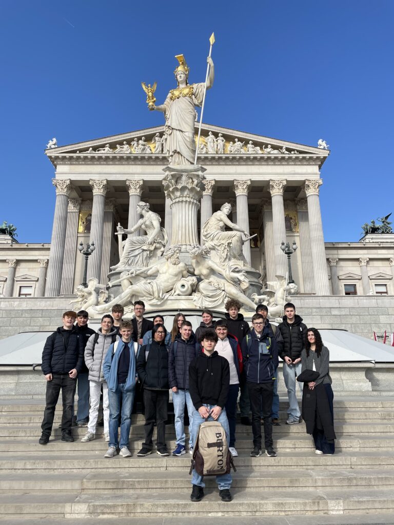 „Wie wird man eigentlich Abgeordnete:r? Warum ist die Säulenhalle so imposant? Und wie läuft eine Sitzung im Nationalrat eigentlich ab? Eine Antwort auf diese und viele weitere Fragen bekamen die Schüler:innen der 2CHWIL bei ihrem Besuch im Parlament. Abgerundet wurde der Besuch mit einer Besichtigung der interaktiven Dauerausstellung ‚Demokratikum‘, in welcher die Schüler:innen nochmal die Gelegenheit bekamen, ihr Wissen über die Entwicklung der Demokratie in Österreich zu vertiefen.“