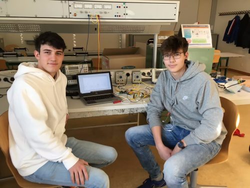 Die Messungen werden synchron an beiden Ohrläppchen mittels kontaktloser Durchleuchtung mit Dioden gemacht (rechter Schüler im Bild hat die Ohrenklipse angelegt). Bisher werden solche Pulsoximeter zur Bestimmung der Pulsrate und der Sauerstoffsättigung im Blut verwendet. Unsere Schüler konnten aber bisher schon zeigen, dass die Amplitude der Durchleuchtungsstärke sensibel ist auf die Blutdurchflussänderungen der Kopfarterien im Seitenvergleich. Weitere Versuche mit Körperschallmikrofonen direkt an den Arterien könnten noch genauere Ergebnisse über die Gehirndurchblutung liefern.