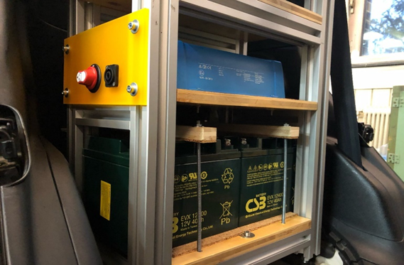 Angefangen haben wir mit einem Regal für unser gesamtes Messequipment. Dies haben wir aus Robot-Units Profilen gebaut. Der nächste Schritt waren die Sensoren, die wir an allen Rädern anbrachten. Mit der geeigneten Programmierung kann man nun über W-Lan in Echtzeit die Daten auswerten lassen.