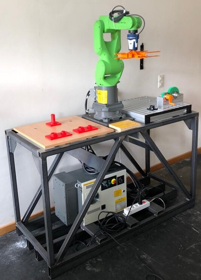 Ein vorhandener Knickarmroboter aus dem Vorjahr soll für den praktischen Einsatz im Labor sowie für Präsentationszwecke am Tag der offenen Tür fertiggestellt werden. Der Roboter soll durch die Besucher sicher und intuitiv gesteuert werden können. Außerdem sollen Demo-Programme vorhanden sein.