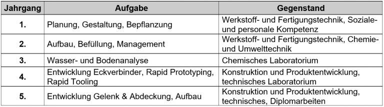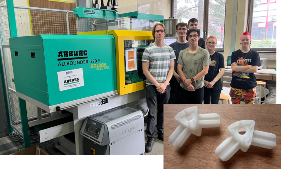 Als Wände dienen Rohre aus dem Extrusionslabor, welche mit Eckverbindern aus dem Spritzguss zu einem sechseckigen Hochbeet zusammengefügt werden. Um die Eckverbinder mittels Spritzguss fertigen zu können, musste ein eigenes Spritzgusswerkzeug konstruiert und gefertigt werden. Dafür wurden moderne Rapid-Tooling Methoden wie zum Beispiel 3D-Druck von Formeinsätzen angewandt. Somit konnten die Schüler*innen den typischen Ablauf in der Industrie kennenlernen und selbst praktisch ausprobieren. Ein highlight war die abschließende Produktion der ersten im Laborunterricht hergestellten Prototypen der Eckverbinder.